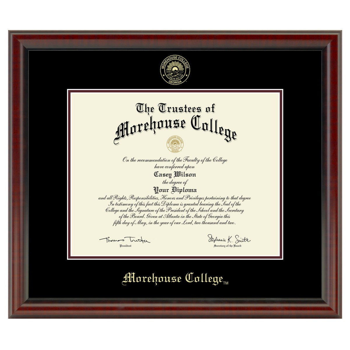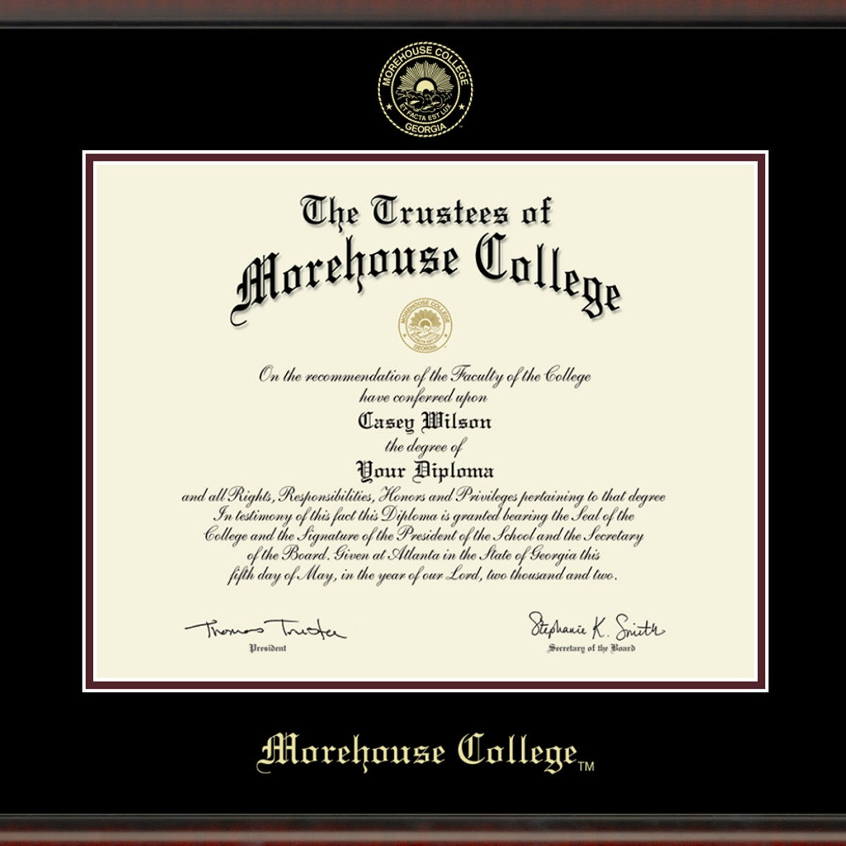 • Gold embossed Morehouse College diploma seal