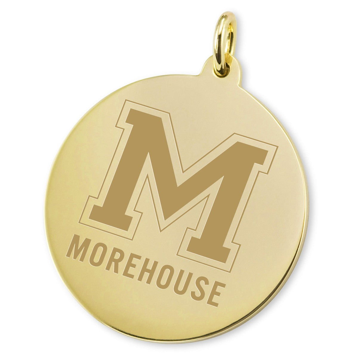Morehouse College 18-karat charm features Morehouse College Logo on front.