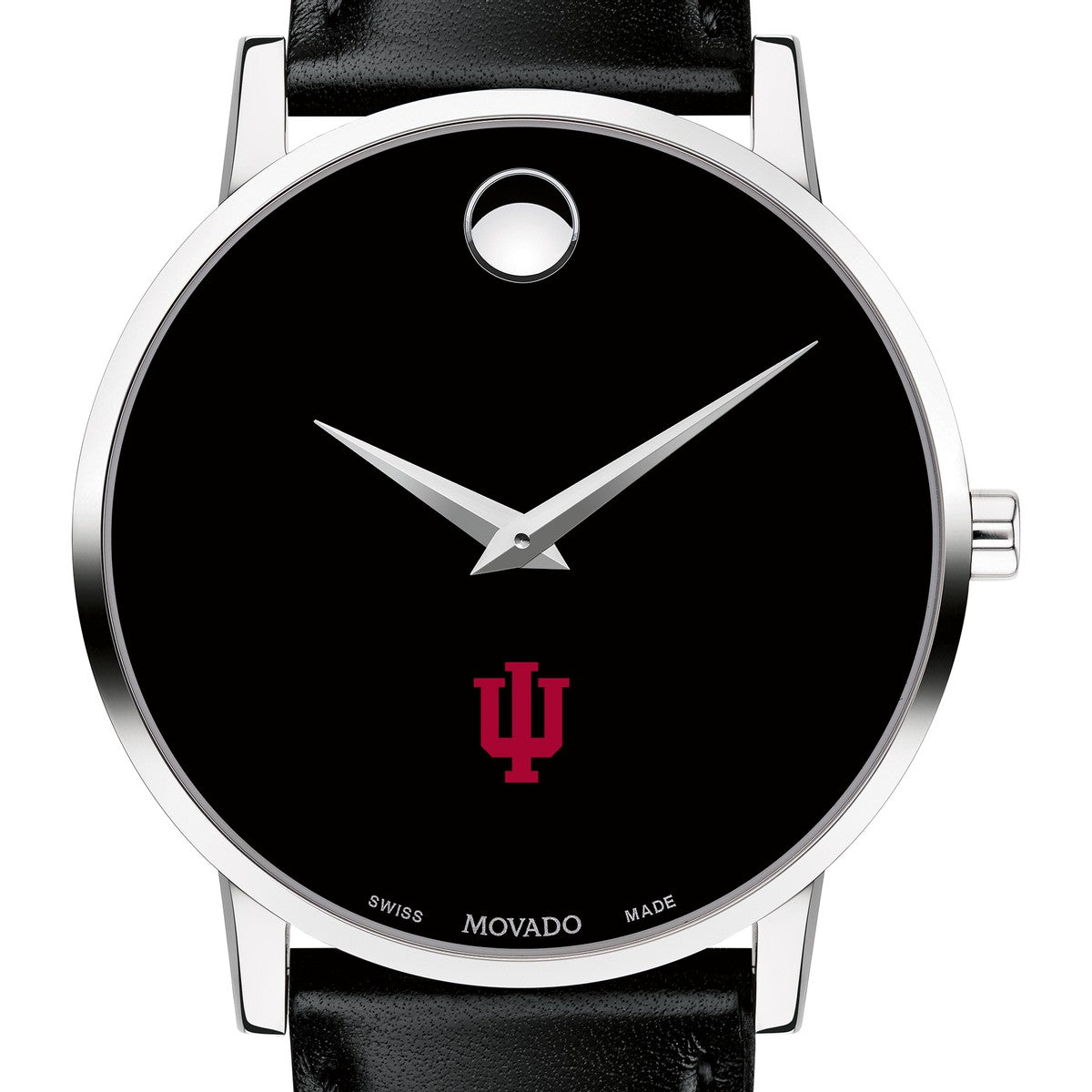 Indiana University Men's Movado Museum watch features the Indiana Logo in full color at 6 o'clock on black dial. Created in 1947, the iconic concave dot symbolizes the sun at high-noon. Complimentary personal engraving.