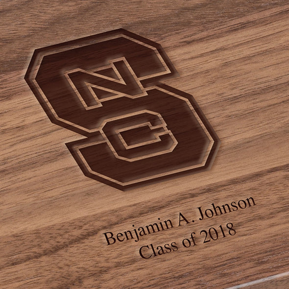 Our beautiful solid walnut desk box is made from hand-selected domestic walnut and crafted in the USA. Each box is hand finished with care, and proudly displays the NC State Logo on the lid.