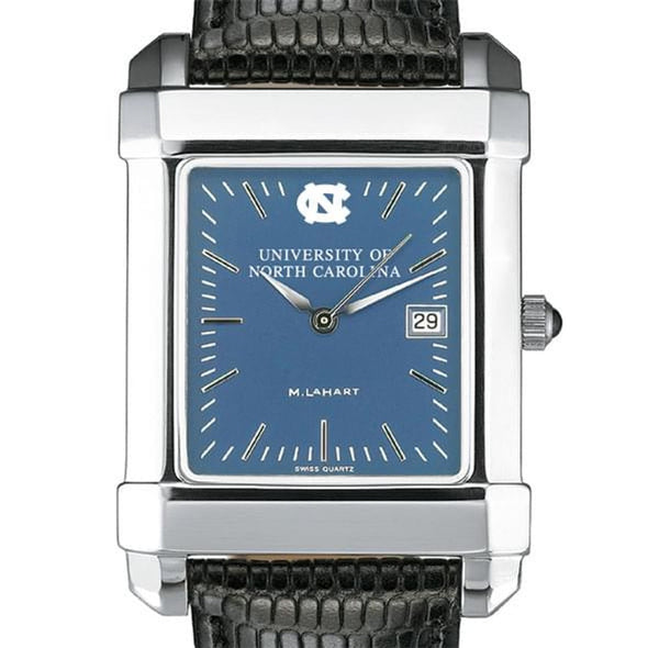 University of North Carolina men's steel watch featuring UNC logo at 12 o'clock and "University of North Carolina" inscribed below on blue dial.