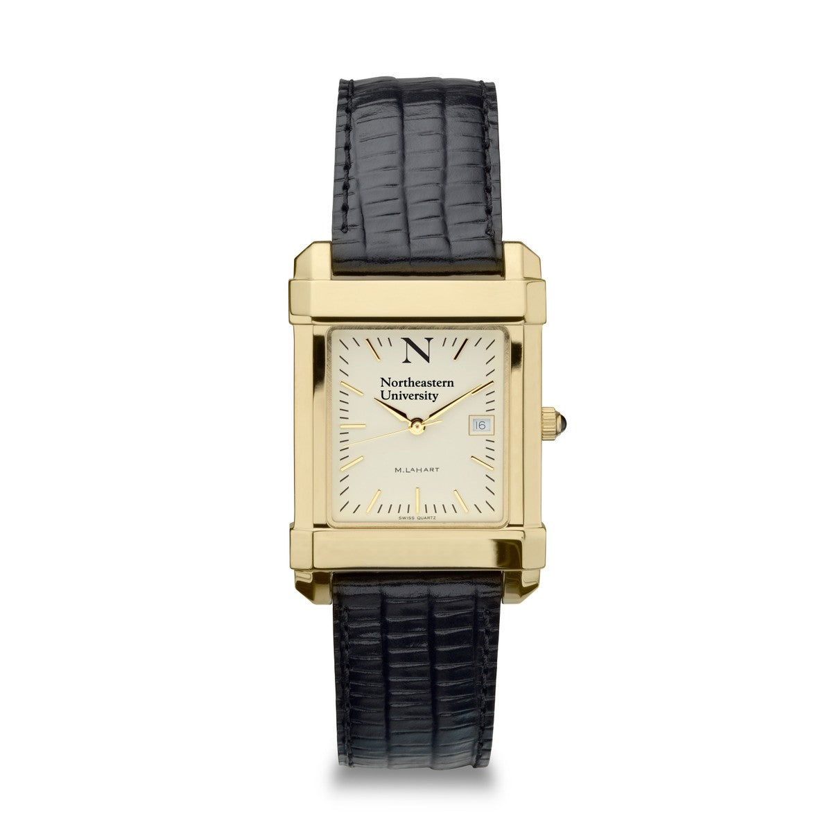 Northeastern University men's gold watch featuring the Northeastern Logo on cream dial. Free Engraving on all watches.
