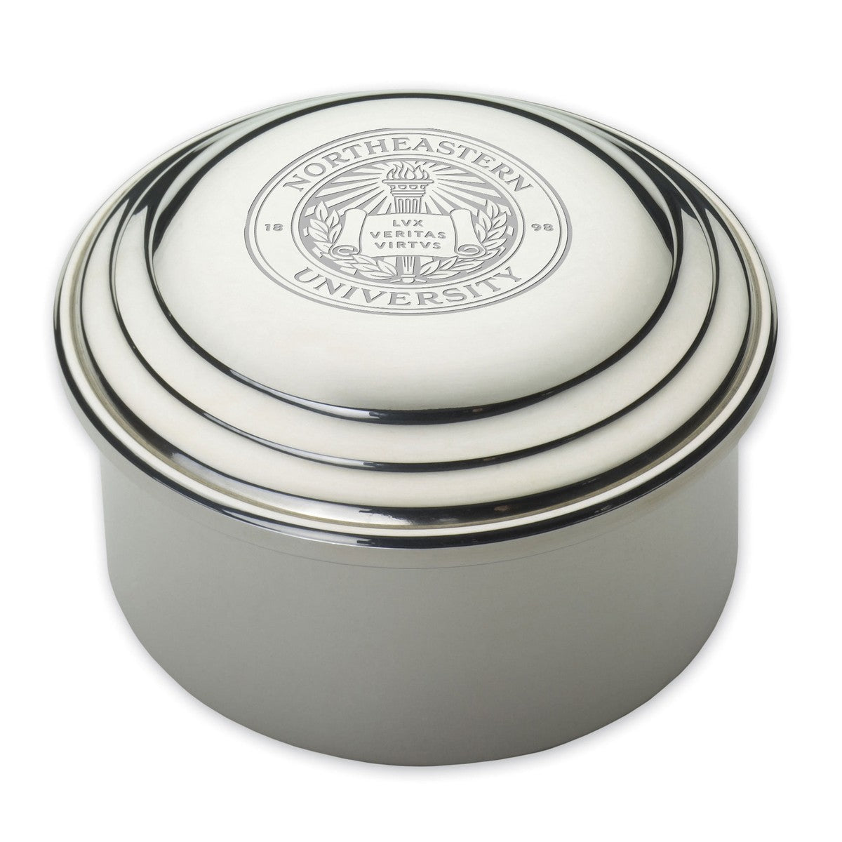 Northeastern University pewter keepsake box is a beautiful space to store your treasures and features the Northeastern Logo on its lid.