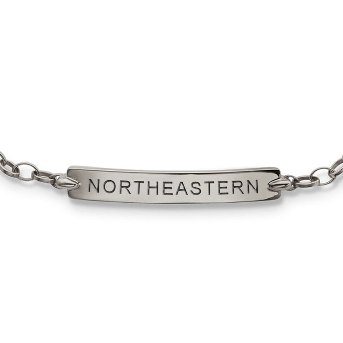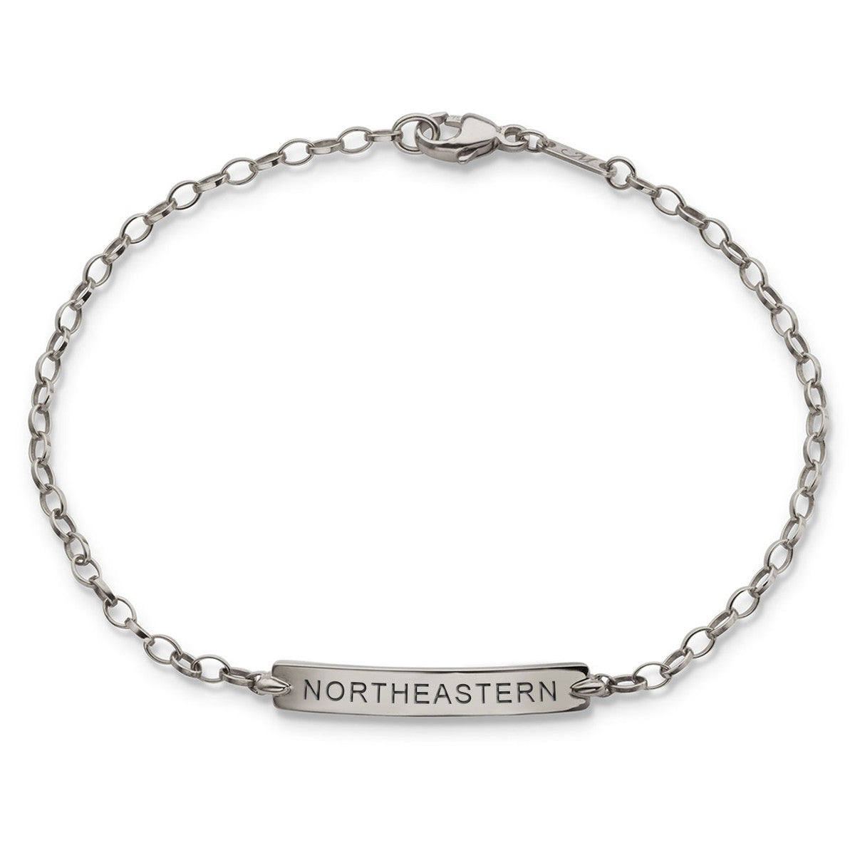 A feminine, delicate bracelet in sterling silver as appropriate for evening wear as day. "NORTHEASTERN" engraved on slim banner accentuates the elegance.