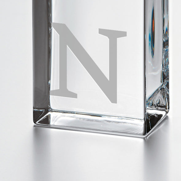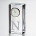 The Northwestern Tall Glass Desk Clock stands proudly on any surface, distinctly etched with the Northwestern Logo. The clock showcases a traditional numbered face with a sweep hand to count the seconds.