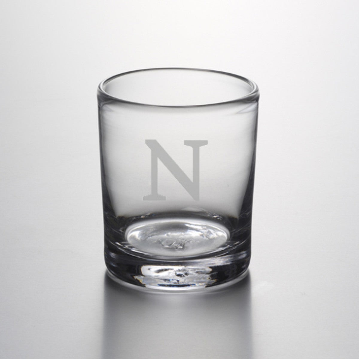 The Northwestern Double Old Fashioned Glass features the Northwestern Logo etched on the hand-blown glass. From its narrowly flared lip to its sleek, cylindrical body and sturdy, solid base, this glass epitomizes sophistication.