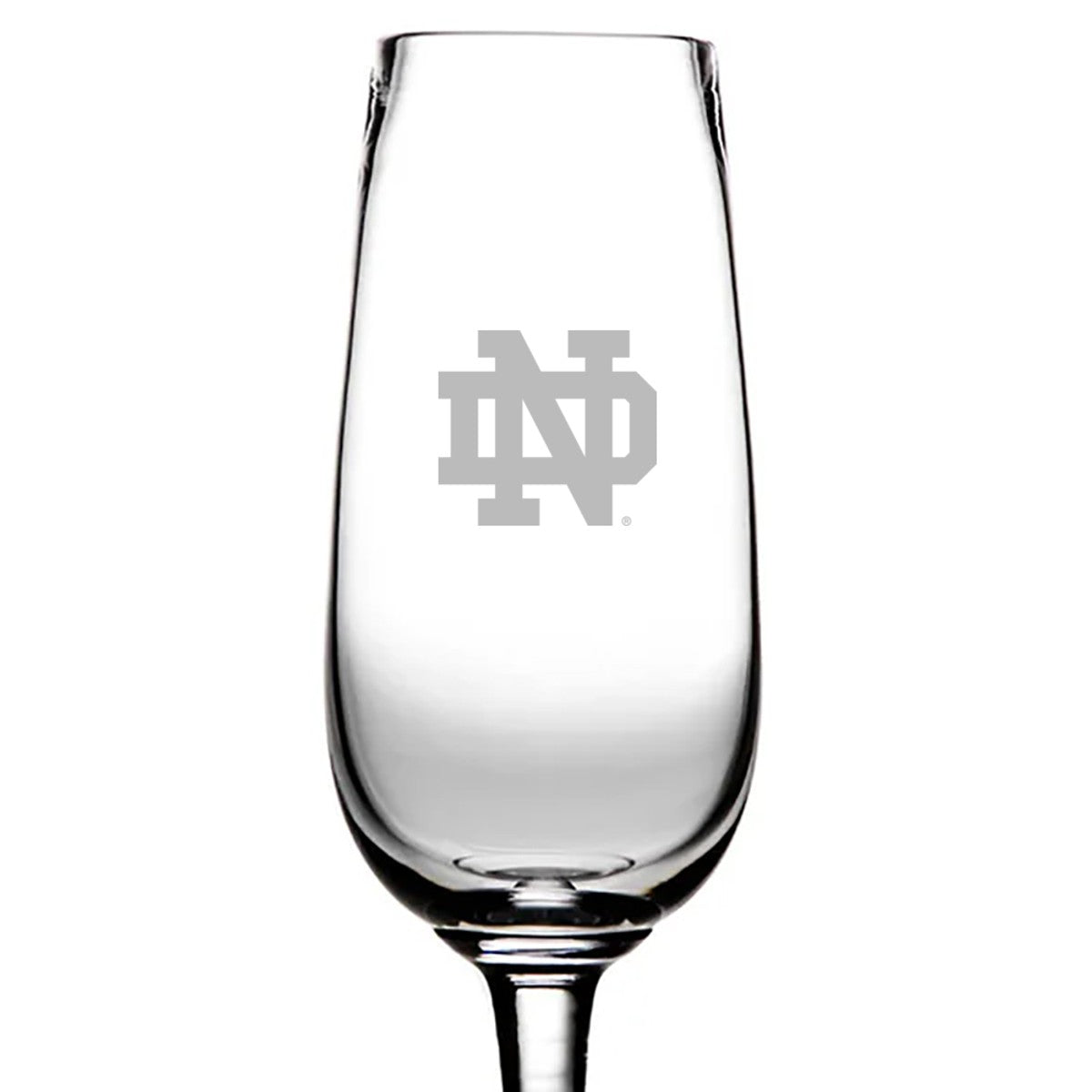The University of Notre Dame Flute Glass is the perfect vessel for toasting special moments with elegance. The Notre Dame Logo is beautifully etched onto the slender, hand-blown glass, bringing a touch of Notre Dame pride to any celebration. With its sleek design and delicate rim, this flute glass is ideal for enjoying champagne or sparkling wine in style.