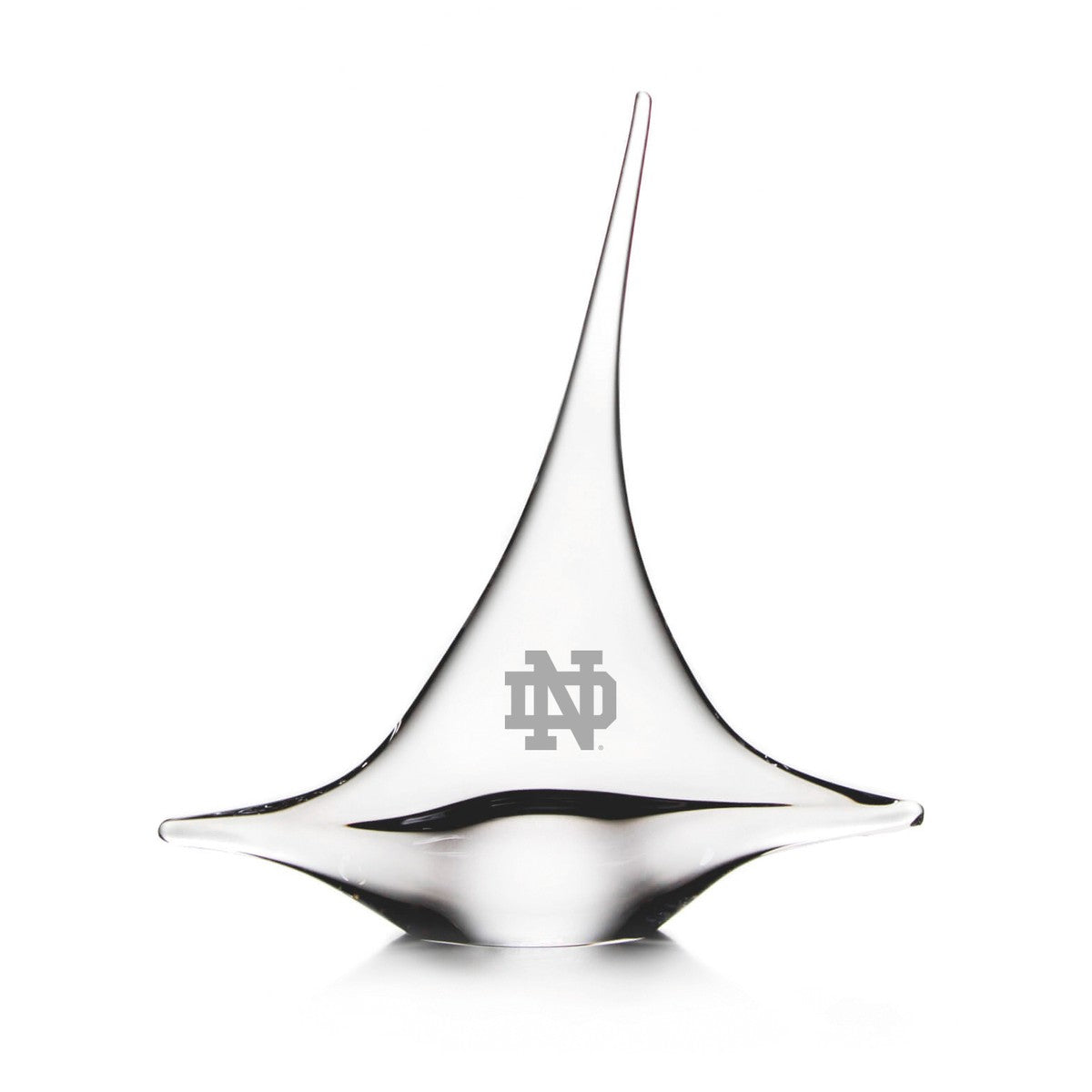 The University of Notre Dame Glass Sailboat is a beautifully crafted decorative piece, featuring the Notre Dame Logo artfully etched into the shimmering glass. This elegant sailboat symbolizes adventure and Notre Dame spirit. serving as a charming reminder of your school pride.