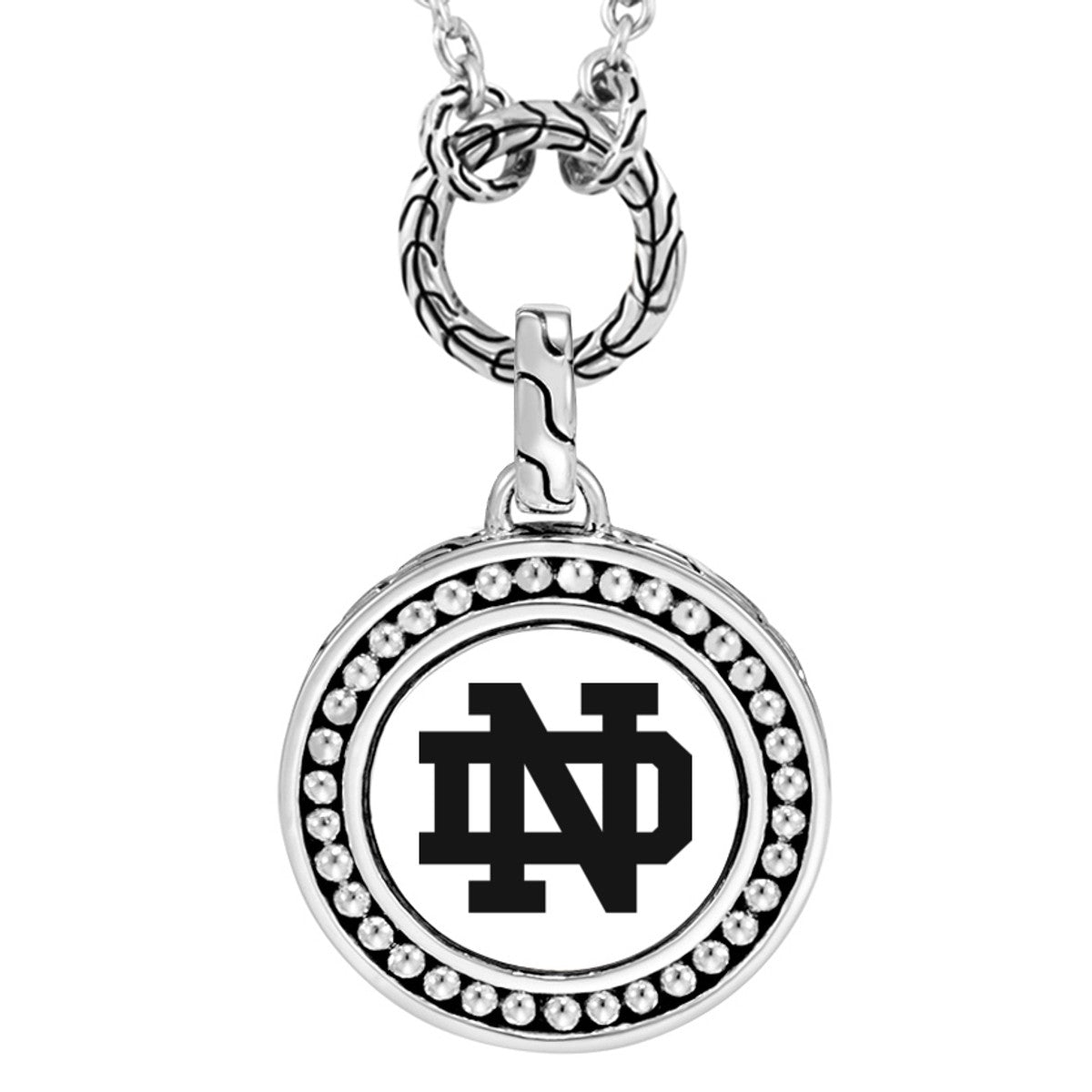 Understated elegance for alumni and grads. The University of Notre Dame Amulet is complemented by the modest sterling silver chain.