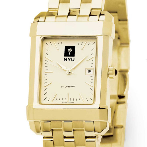 New York University men's gold watch featuring the NYU Logo on cream dial. Free Engraving on all watches.