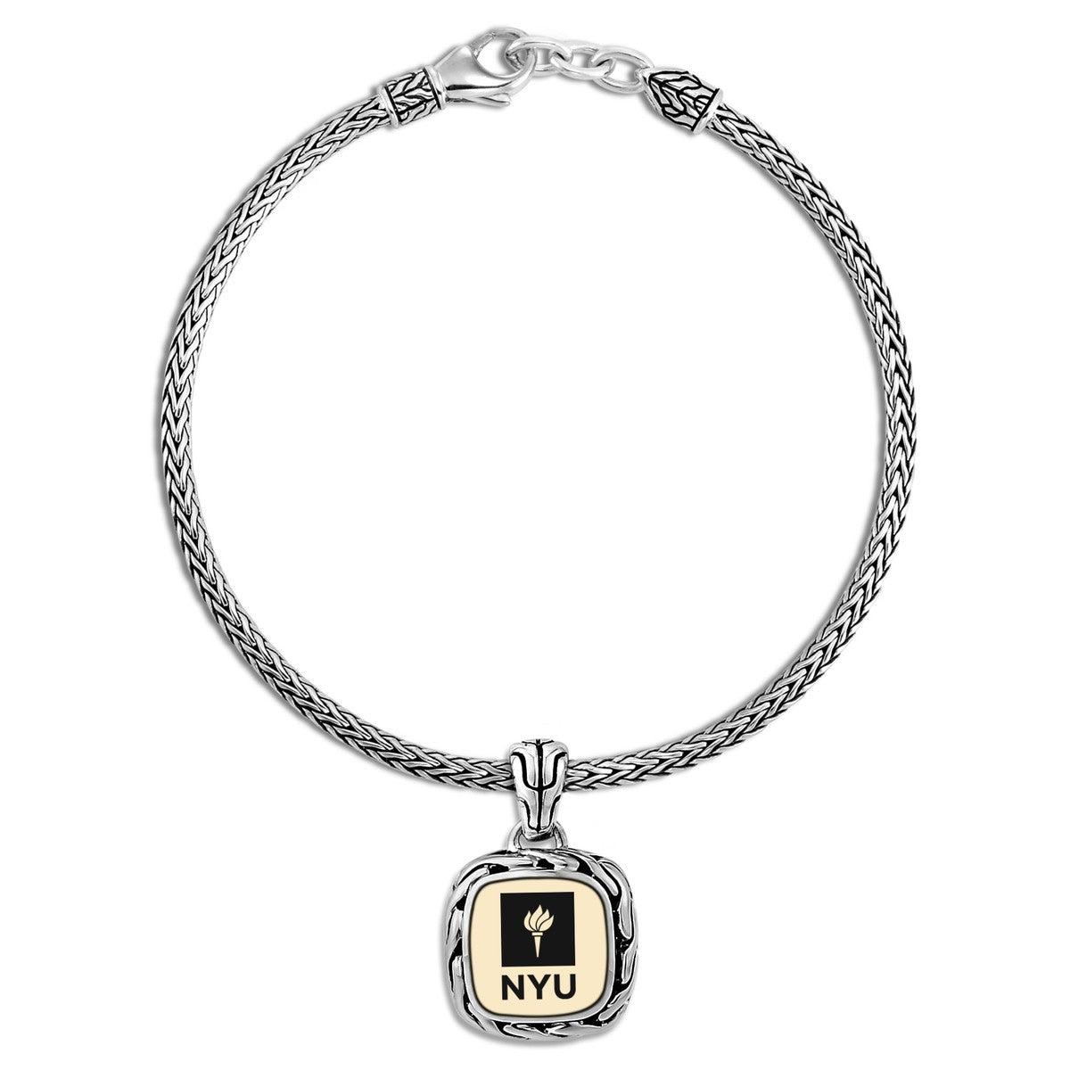 The sterling charm features an 18-karat gold center, intricately engraved with the NYU Logo. The bracelet is handwoven from beautiful sterling silver strands, giving each piece authentic contours, movement and feel – and quintessential John Hardy style.