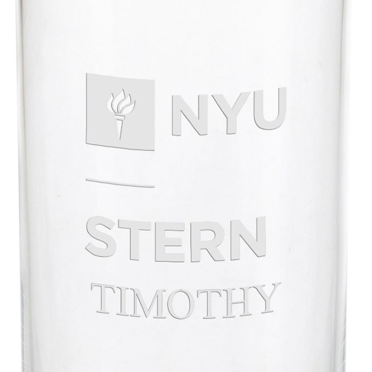 NYU Stern School of Business iced beverage glasses have the NYU Stern Logo deep-etched on each glass. Generously proportioned 16-ounce glasses are a pleasure to hold.