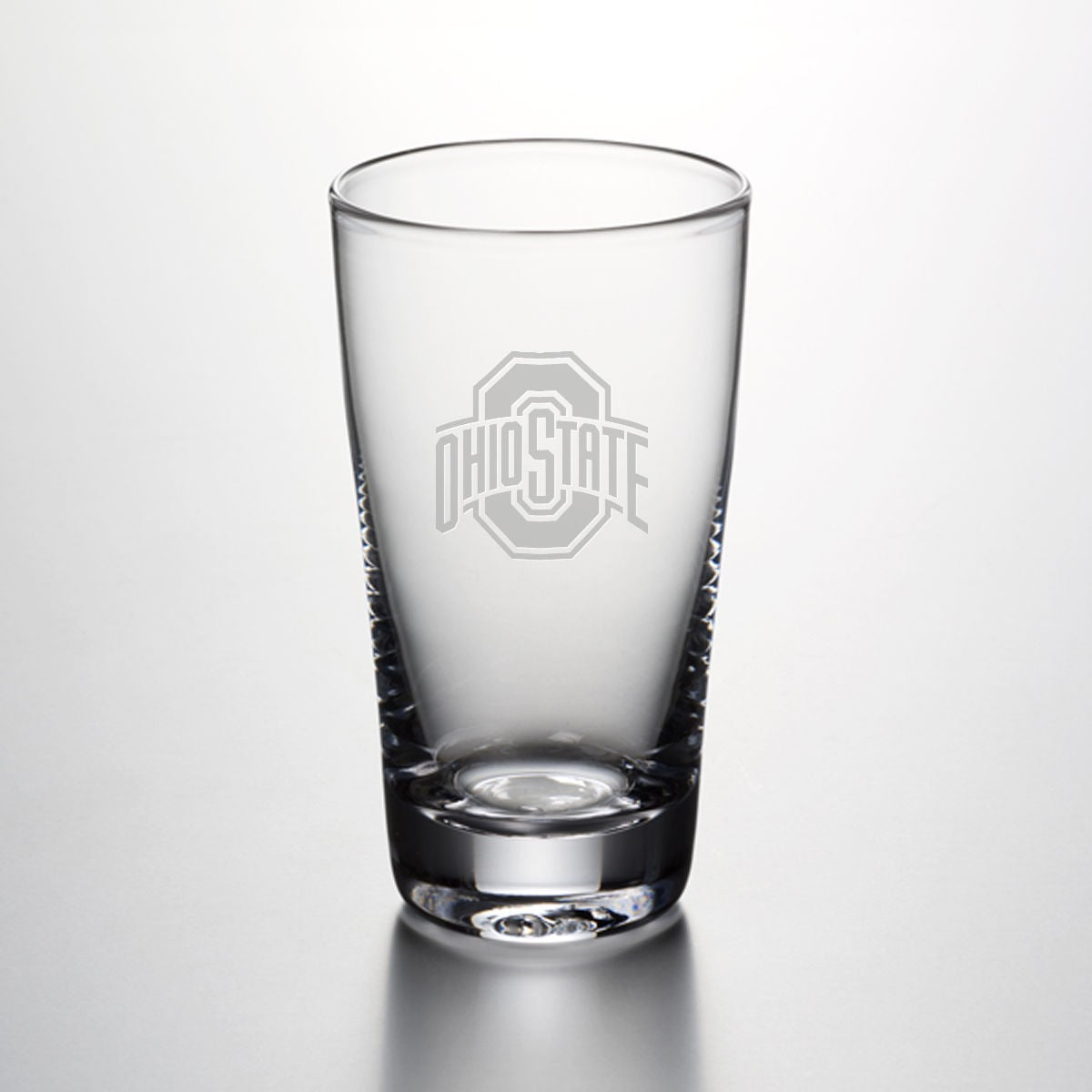Ohio State Pint Glass features the Ohio State Logo handsomely engraved on the hand-blown glass. From its narrowly flared lip to its sleek, cylindrical body and sturdy, solid base, this pint glass is a classic.