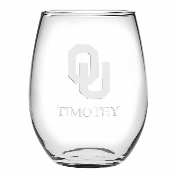 These modern University of Oklahoma stemless wine glasses are perfect for every occasion and any type of wine. Each glass is made in the USA and laser etched with Oklahoma Logo.