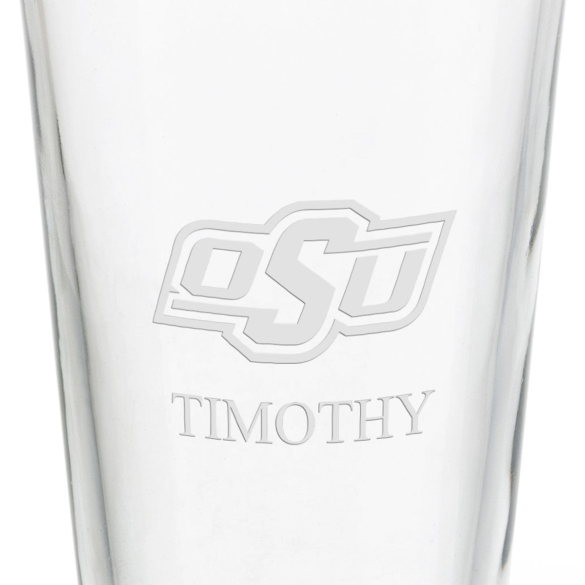 Each Oklahoma State 16 oz pint glass is deep-etched with the Oklahoma State University logo. Its simple styling and crystal-clear clarity make this glass perfect for any drink. Your name can be added under the logo for free.