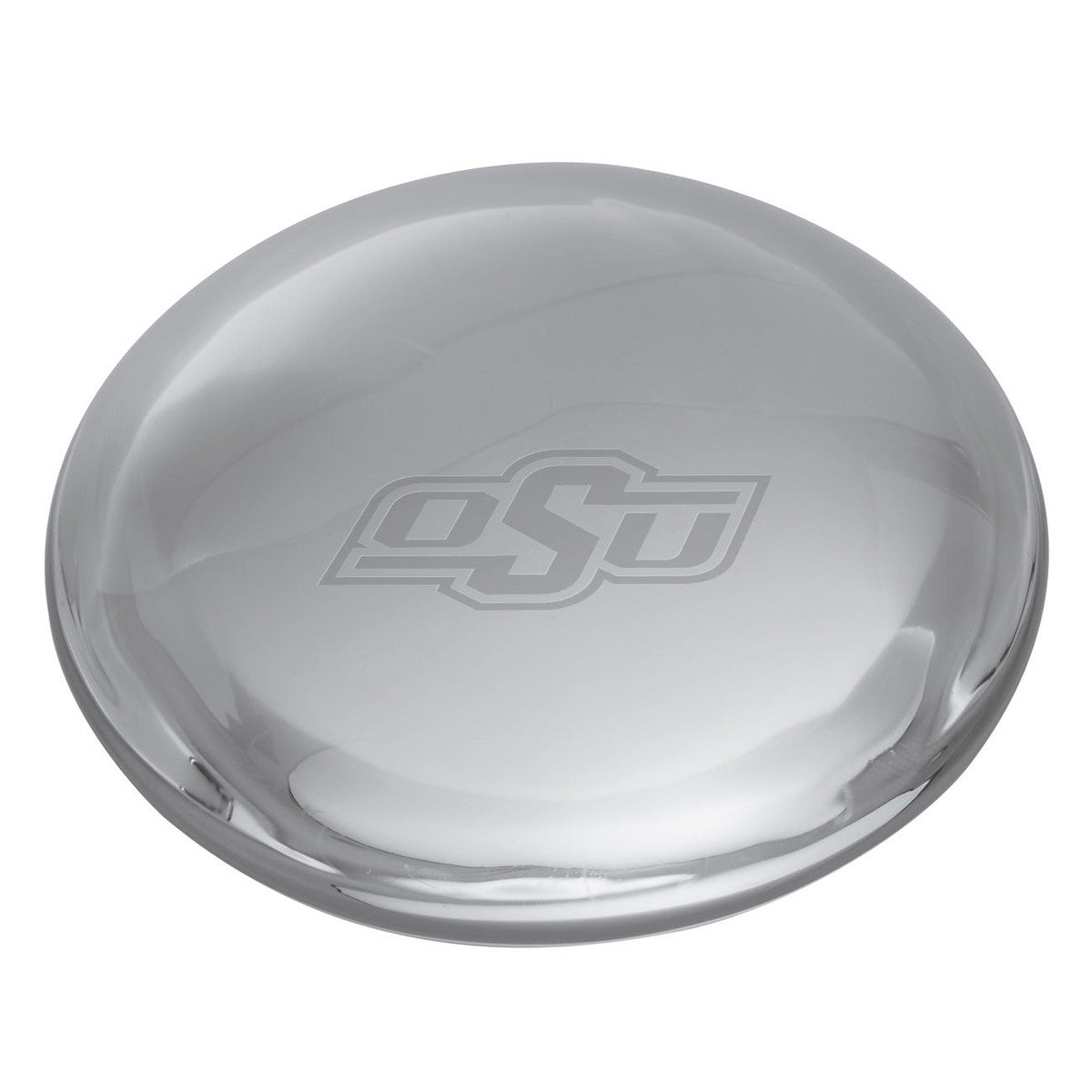 A proud display of Oklahoma State pride for any office, the Oklahoma State logo is prominently etched on this hand-crafted glass paperweight.