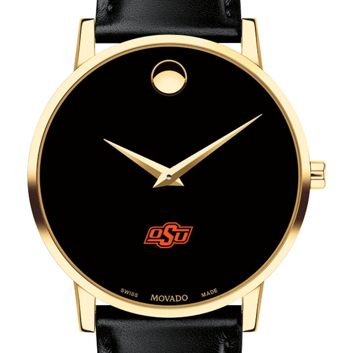 Oklahoma State Men's Movado Gold Museum Classic Leather