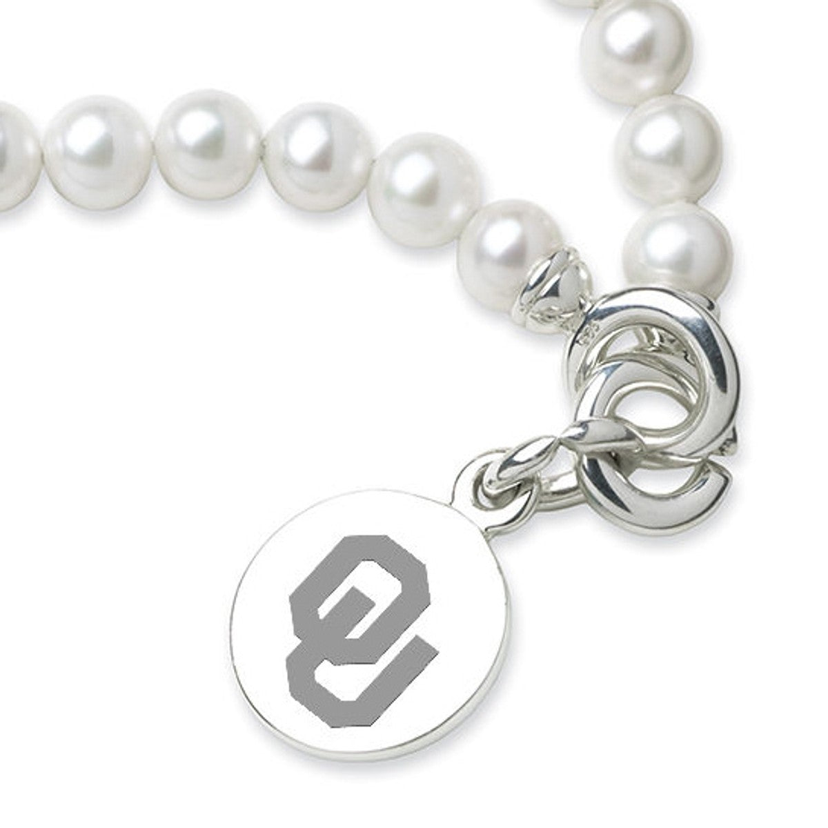 University of Oklahoma pearl bracelet and sterling silver OU charm features OU logo delicately engraved on front and interlocking "C" clasp.
