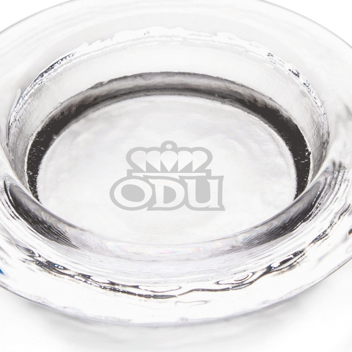 The Old Dominion University Glass Wine Coaster, with the Old Dominion logo distinctly etched on the base, is handcrafted with a thick, round lip and ample opening to accommodate different bottle sizes. Not only is the wine coaster an elegant feature to any table, it will also protect your furniture's finish.
