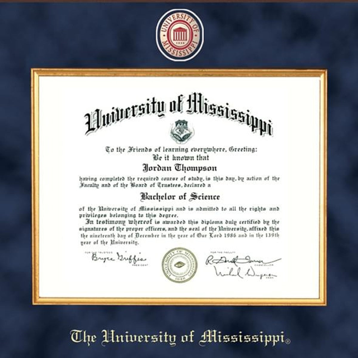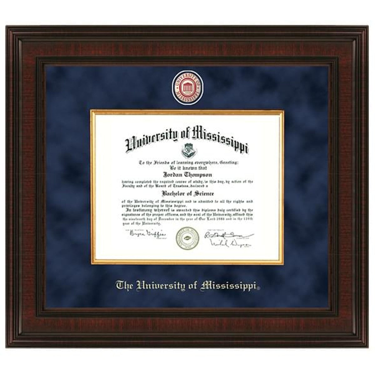 • Gold embossed Ole Miss diploma seal