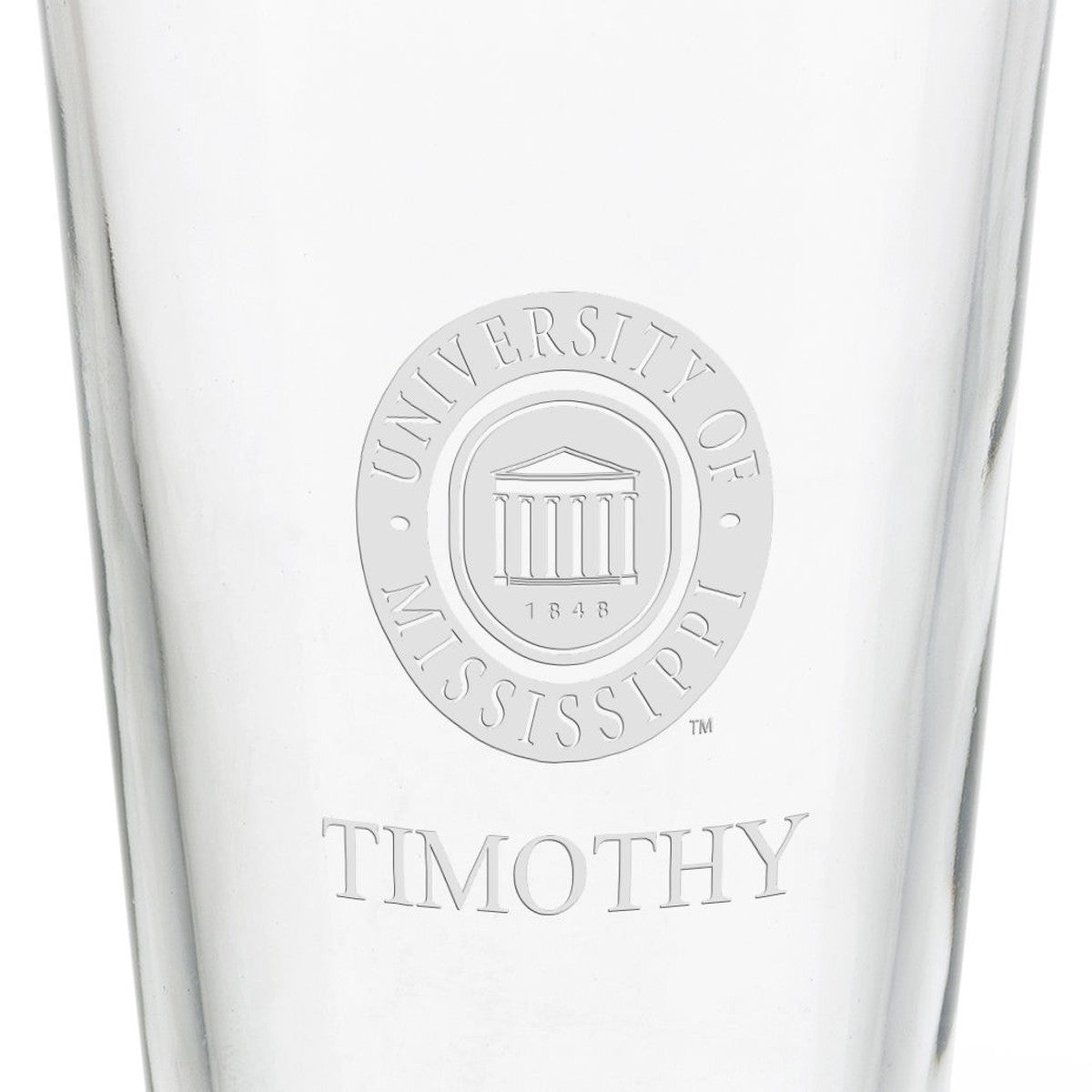 Each Ole Miss 16 oz pint glass is deep-etched with the University of Mississippi logo. Its simple styling and crystal-clear clarity make this glass perfect for any drink. Your name can be added under the logo for free.