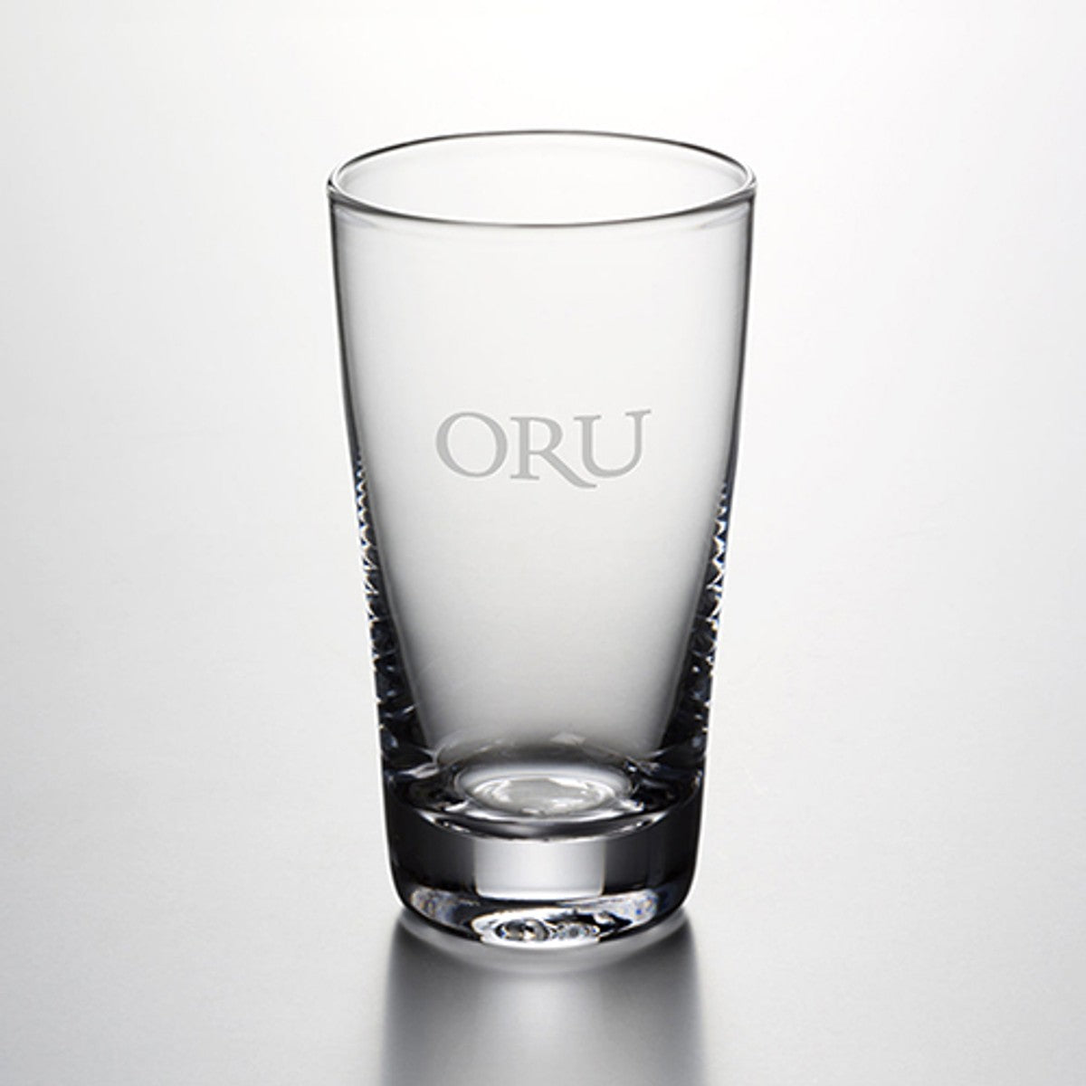Oral Roberts Pint Glass features the Oral Roberts Logo handsomely engraved on the hand-blown glass. From its narrowly flared lip to its sleek, cylindrical body and sturdy, solid base, this pint glass is a classic.