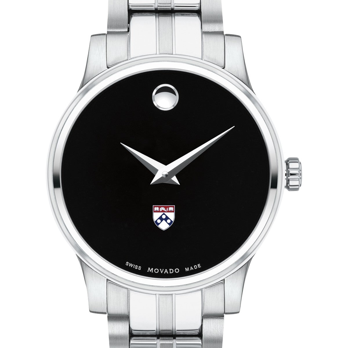 The University of Pennsylvania Women's Movado Collection watch showcases the iconic Penn Logo in full color against a sophisticated black dial. This elegant timepiece, featuring the renowned concave dot symbolizing the sun at high noon, embodies timeless style. Personalize your watch with free engraving without any delay to your order.