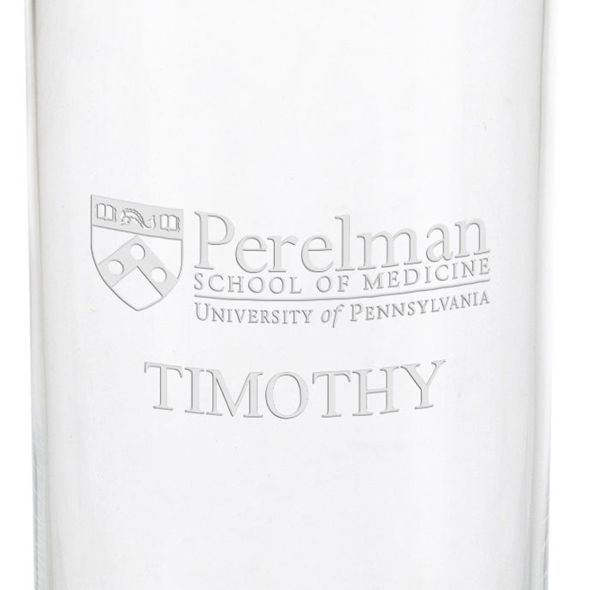 Perelman School of Medicine iced beverage glasses have the Penn Med logo deep-etched on each glass. Generously proportioned 16-ounce glasses are a pleasure to hold.