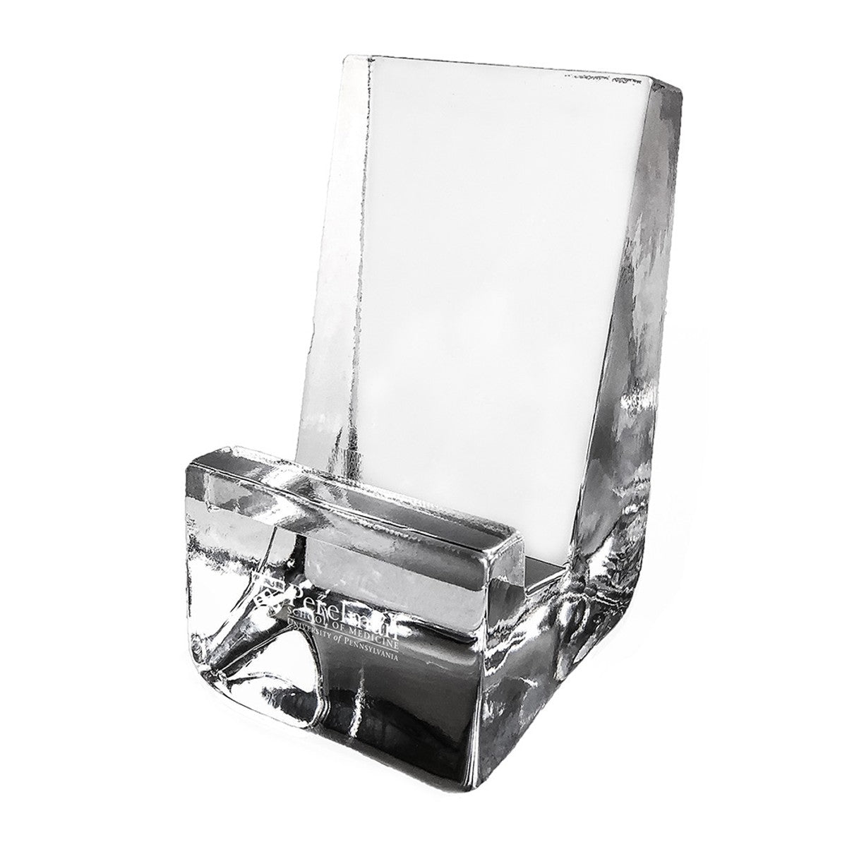This handcrafted Perelman School of Medicine Glass Phone Holder is the perfect addition to your work or home environment. Formed from only the finest clear glass, the Penn Med logo is distinctly etched on the front.