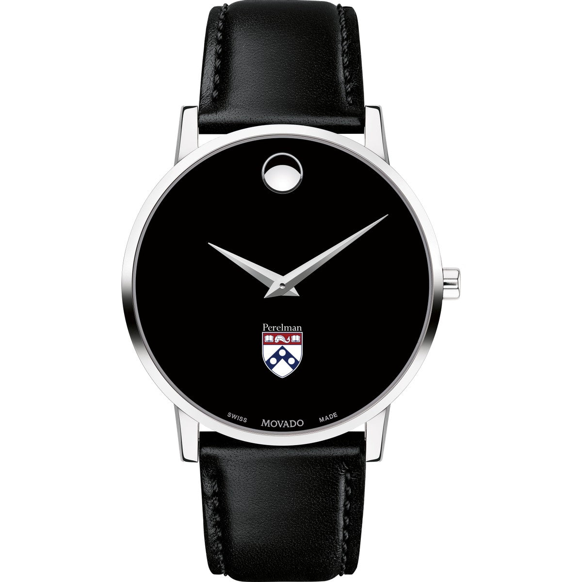 Perelman School of Medicine Men's Movado Museum watch features the Penn Med logo in full color at 6 o'clock on black dial. Created in 1947, the iconic concave dot symbolizes the sun at high-noon. Complimentary personal engraving.