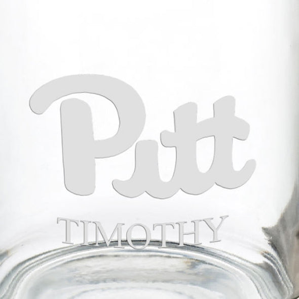 The Pitt glass coffee mug is deep-etched with the Pitt logo. Generously proportioned 13 oz glasses are a pleasure to hold. Your name can be added under the logo for free.