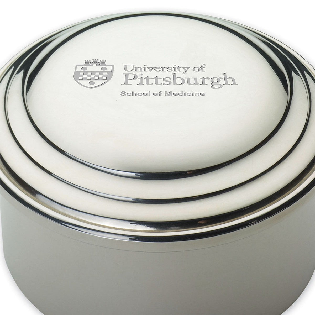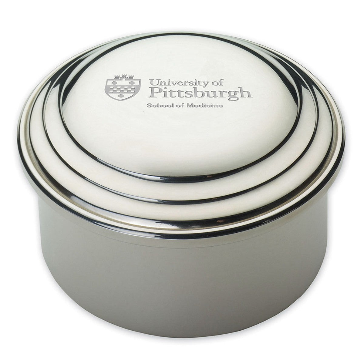 University of Pittsburgh School of Medicine pewter keepsake box is a beautiful space to store your treasures and features the Pittsburgh School of Medicine Logo on its lid.