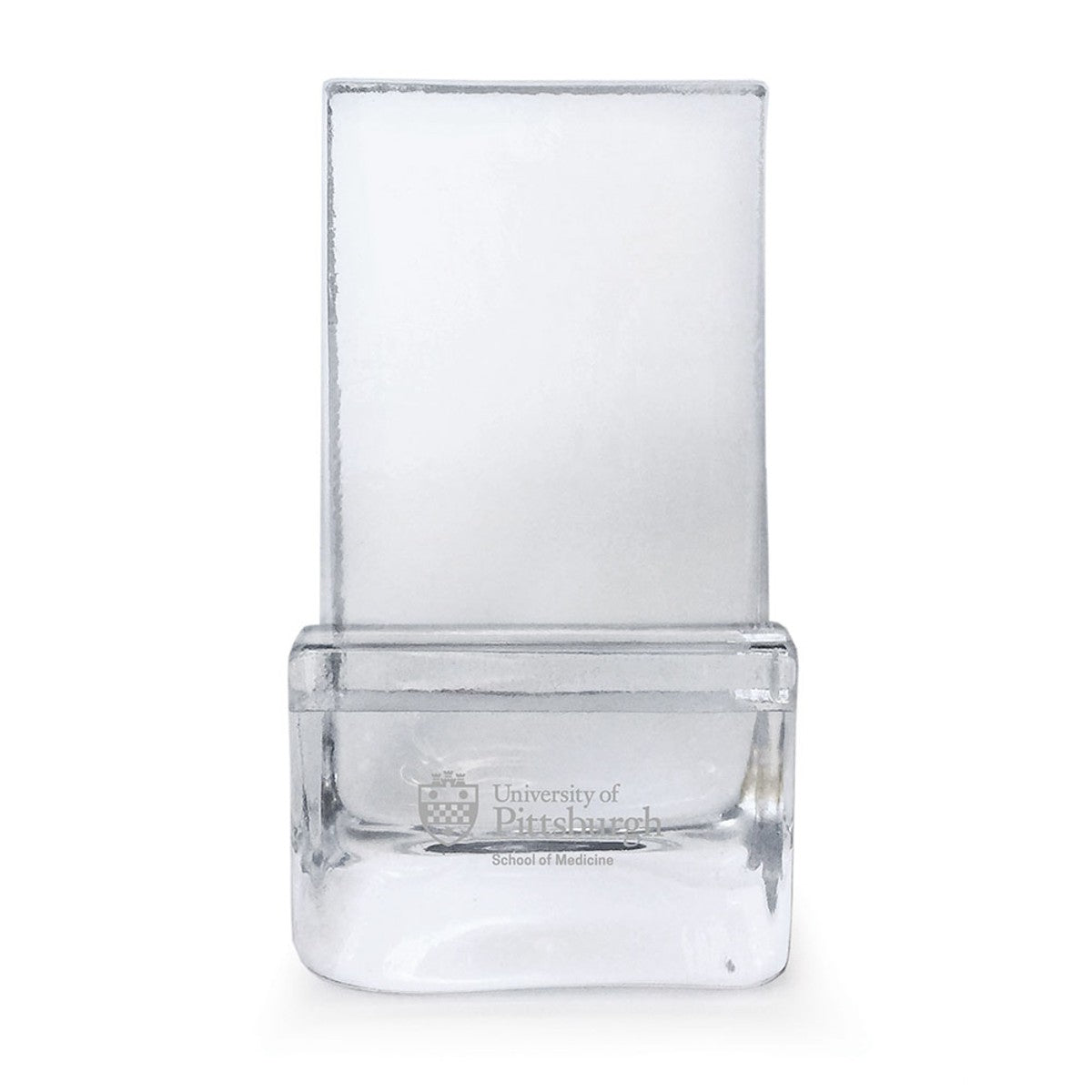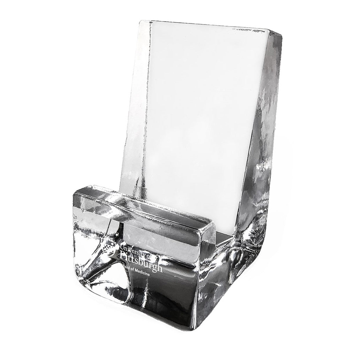 This handcrafted University of Pittsburgh School of Medicine Glass Phone Holder is the perfect addition to your work or home environment. Formed from only the finest clear glass, the Pittsburgh School of Medicine Logo is distinctly etched on the front.