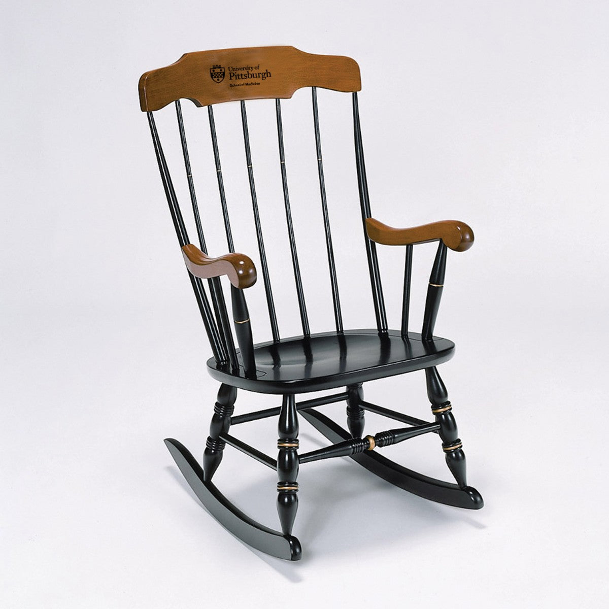 The hand-crafted University of Pittsburgh School of Medicine Rocking chair represents American craftsmanship at its finest. A one-of-a-kind reminder of your Pitt Med days. Each commemorative chair is finely detailed with the Pittsburgh School of Medicine Logo on solid maple hardwood.