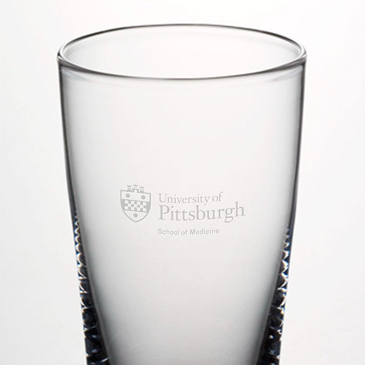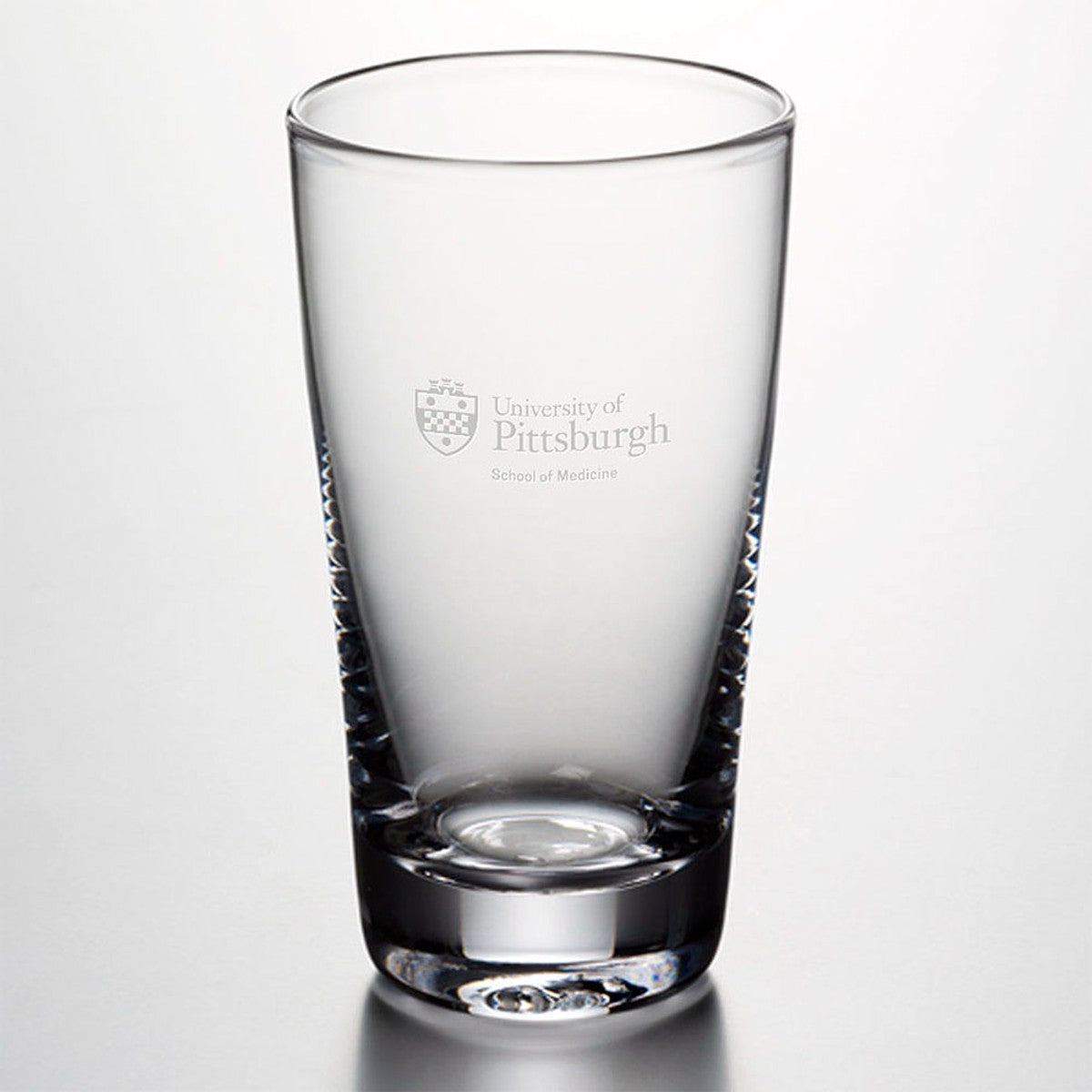 Pitt Med Pint Glass features the Pittsburgh School of Medicine Logo handsomely engraved on the hand-blown glass. From its narrowly flared lip to its sleek, cylindrical body and sturdy, solid base, this pint glass is a classic.