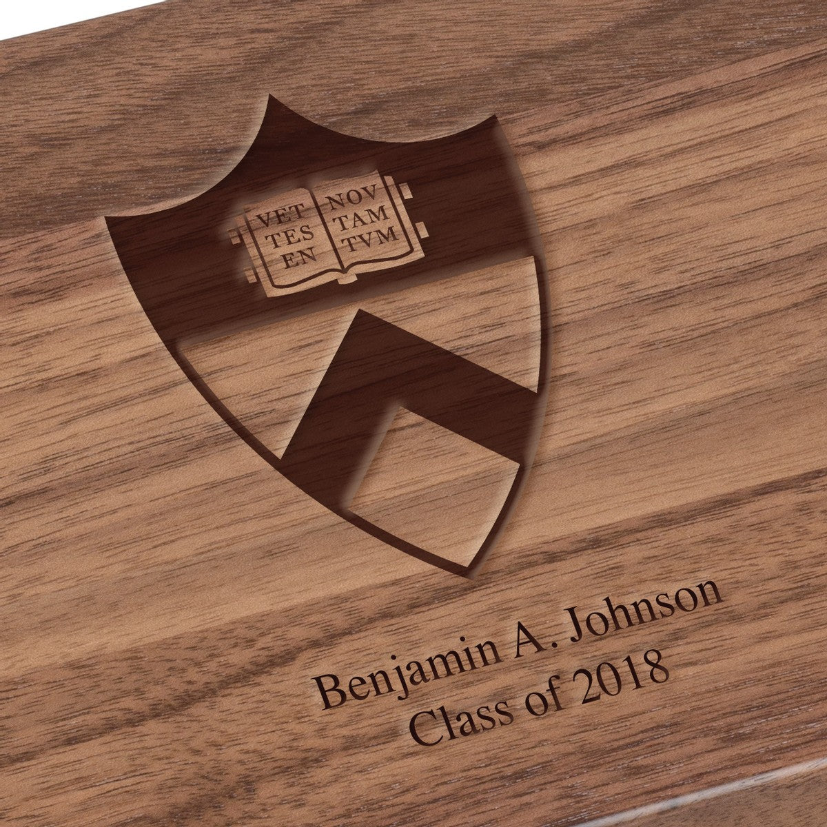 Our beautiful solid walnut desk box is made from hand-selected domestic walnut and crafted in the USA. Each box is hand finished with care, and proudly displays the Princeton Logo on the lid.