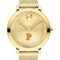 The Princeton University Women's BOLD Movado features the prestigious Princeton Logo. Its pale gold Ionic-plated stainless steel mesh bracelet exudes contemporary elegance, making it a timeless accessory for the modern woman.