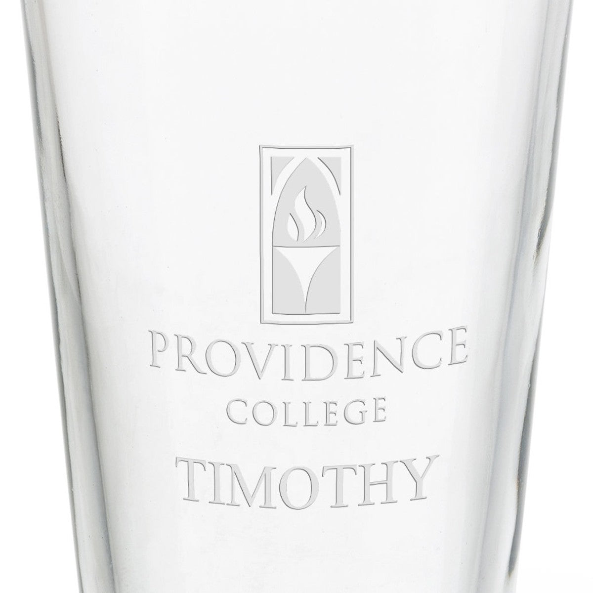 Each Providence 16 oz pint glass is deep-etched with the Providence College logo. Its simple styling and crystal-clear clarity make this glass perfect for any drink. Your name can be added under the logo for free.
