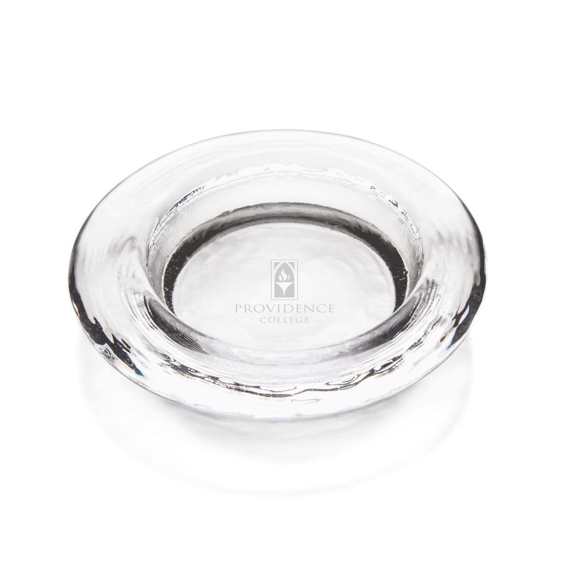The Providence College Glass Wine Coaster, with the Providence Logo distinctly etched on the base, is handcrafted with a thick, round lip and ample opening to accommodate different bottle sizes. Not only is the wine coaster an elegant feature to any table, it will also protect your furniture's finish.