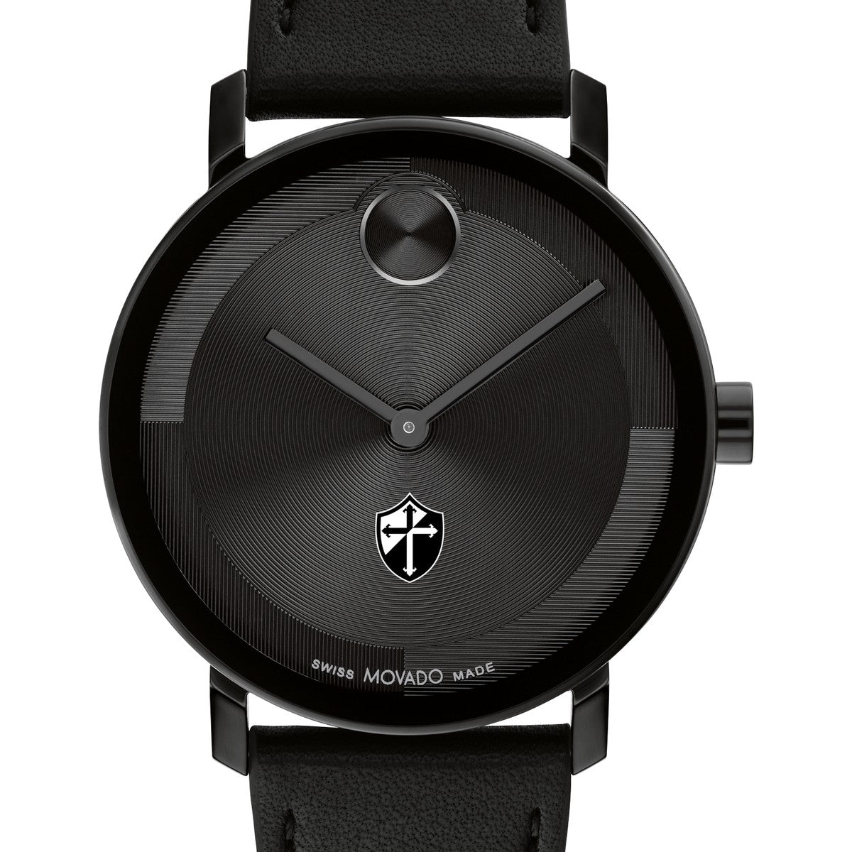 Adorned with the esteemed Providence Logo emblem, this Providence College Movado showcases a black Nappa leather strap and black ionic-plated steel case, embodying the essence of modern luxury. Complimentary personal engraving.
