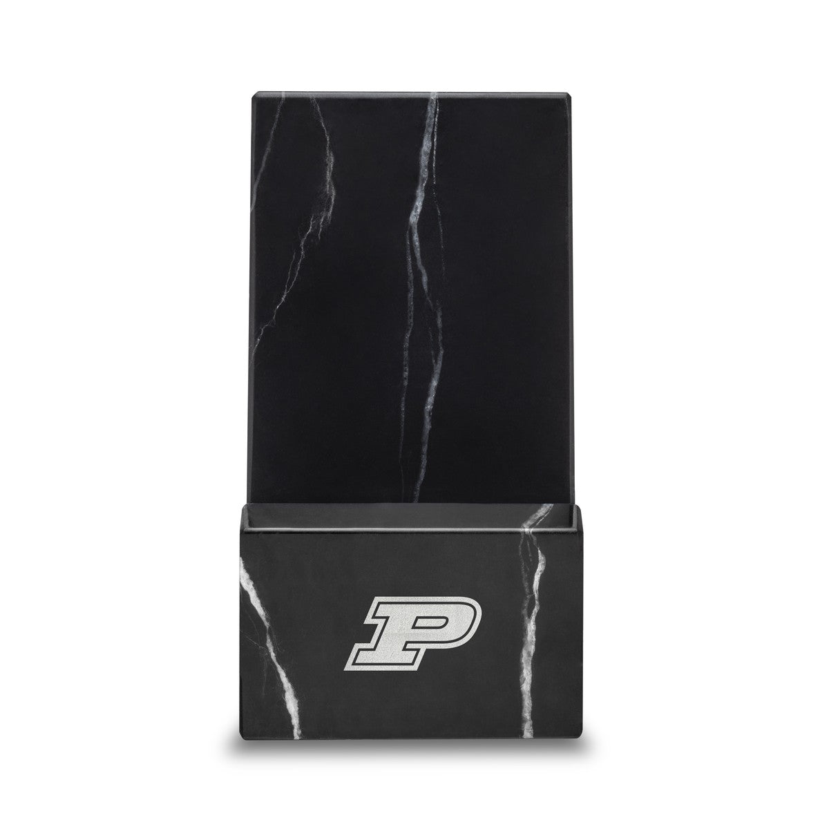 The perfect companion to our marble card holder, the officially licensed Purdue University marble phone holder is an essential accessory for every Purdue fan's desk. The Purdue University logo is elegantly featured on the front of this substantial, solid marble phone holder and accommodates most smartphones.