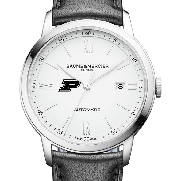 Purdue Men's Baume et Mercier 42mm Classima Automatic Watch with White Dial & Black Leather Strap