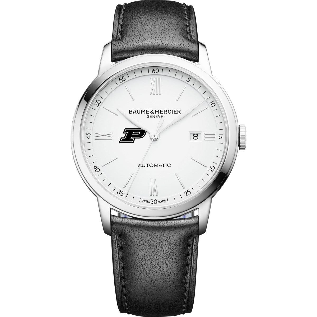 Experience the perfect fusion of school traditions and modern innovation with the Purdue Men's Baume et Mercier 42mm Classima Automatic Watch. Its crisp white matte dial with the Purdue logo, polished steel hands, and black leather strap embody effortless elegance and superior Swiss craftsmanship. Complimentary personal engraving.