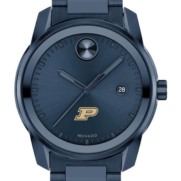 Purdue University Men's Movado BOLD Blue Ion with Date Window features high-tech materials, bold signature dot, and the sophistication of Movado with the Purdue University logo. Complimentary personal engraving.