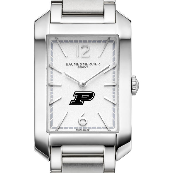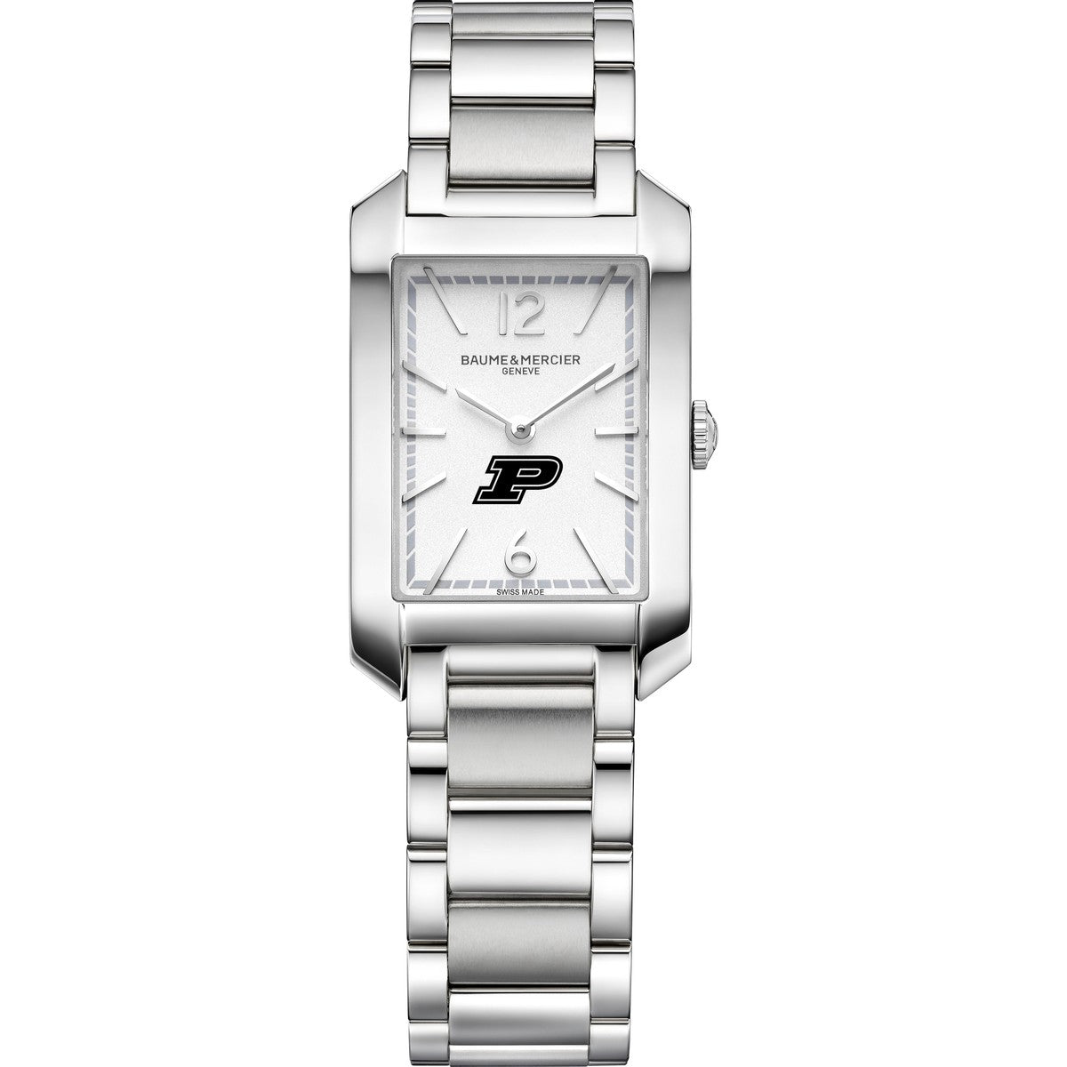 Sleek and sophisticated, the Purdue Women's Baume et Mercier Hampton Watch combines a silver opaline dial with the Purdue logo, rhodium-plated hands, and a polished stainless steel bracelet. A refined and elegant timepiece for those who appreciate timeless style. Complimentary personal engraving.