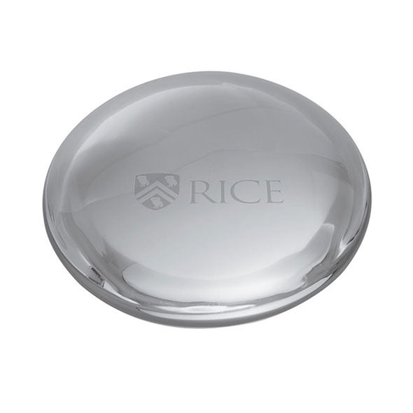 A proud display of Rice pride for any office, the Rice logo is prominently etched on this hand-crafted glass paperweight.
