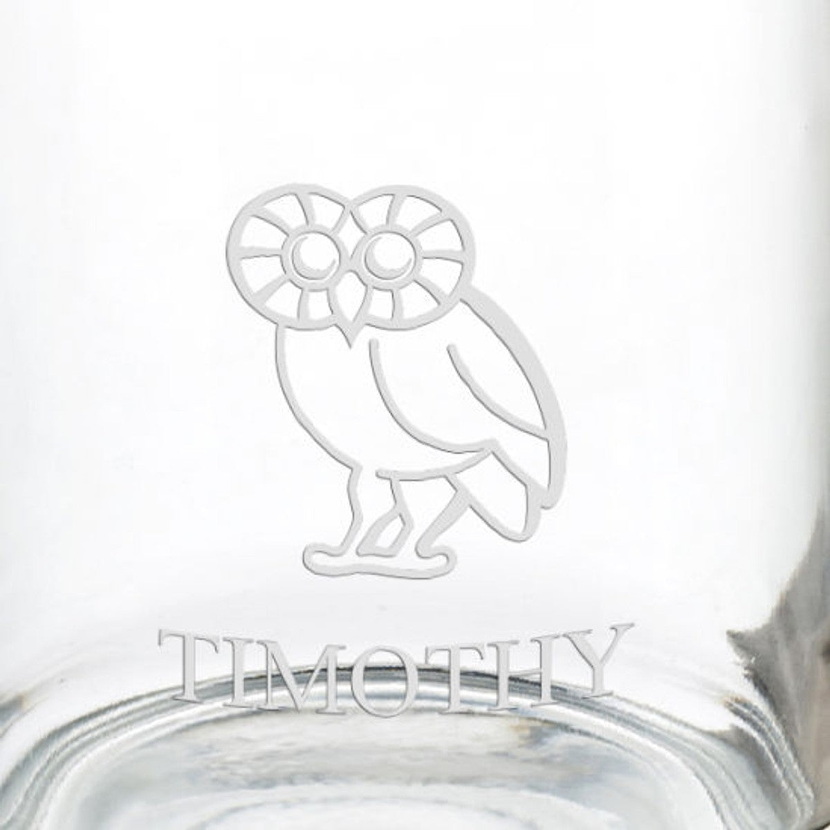 The Rice glass coffee mug is deep-etched with the Rice University logo. Generously proportioned 13 oz glasses are a pleasure to hold. Your name can be added under the logo for free.