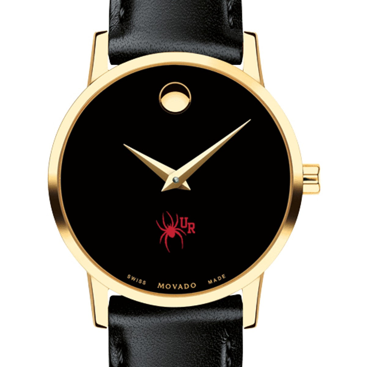 University of Richmond Women's Movado Museum watch features the Richmond logo in full color at 6 o'clock on black dial. Created in 1947, the iconic concave dot symbolizes the sun at high-noon. Complimentary personal engraving.