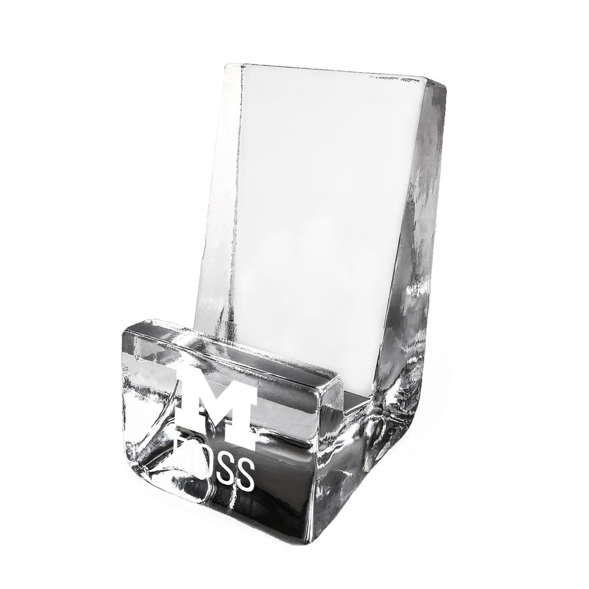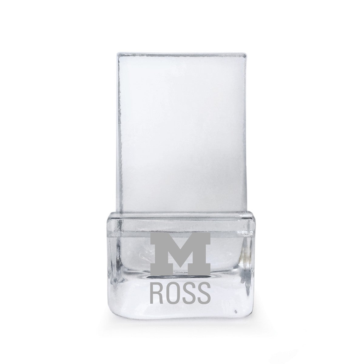 This handcrafted Ross School of Business Glass Phone Holder is the perfect addition to your work or home environment. Formed from only the finest clear glass, the Michigan Ross logo is distinctly etched on the front.