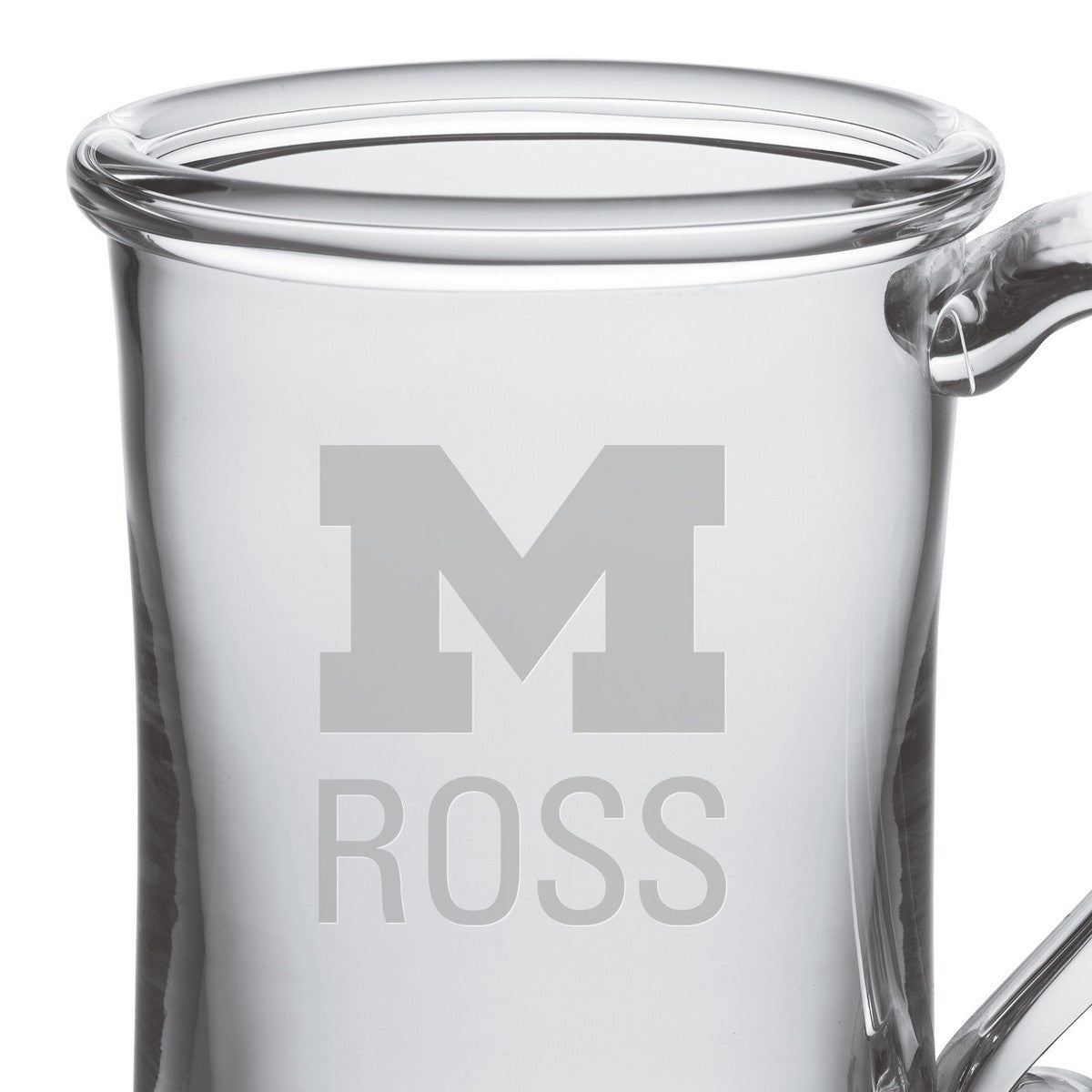 The Michigan Ross Glass Tankard is an ideal choice if you're looking for a versatile glass. The enchantingly curved glass handle will help ensure that you don't spill a drop. The Glass Tankard has the Michigan Ross logo handsomely etched on the hand-blown glass.